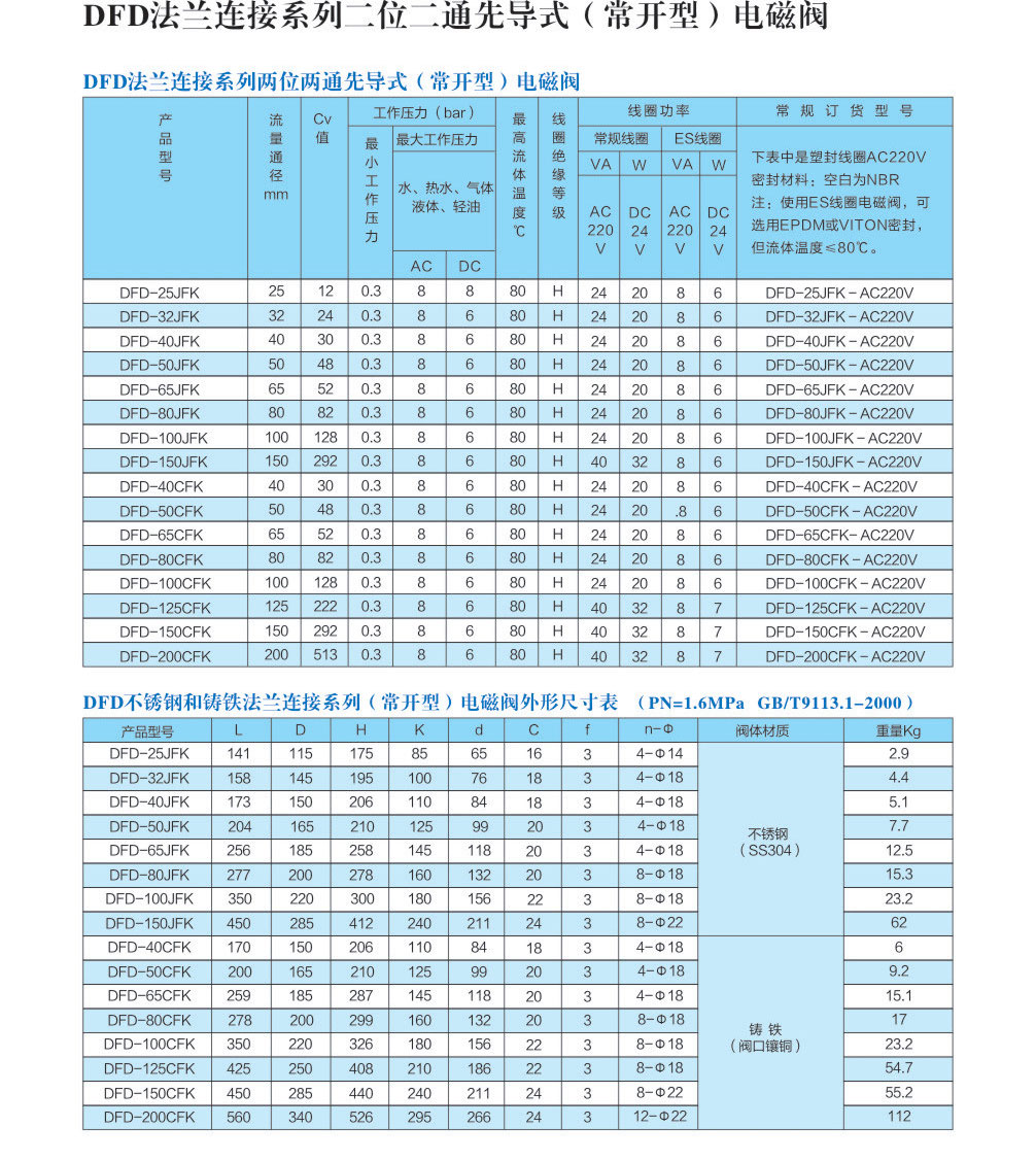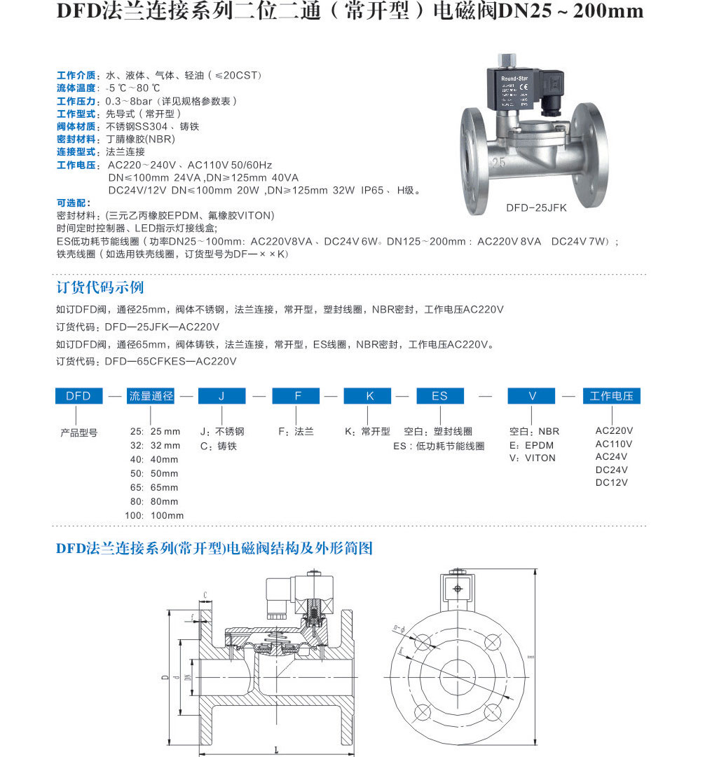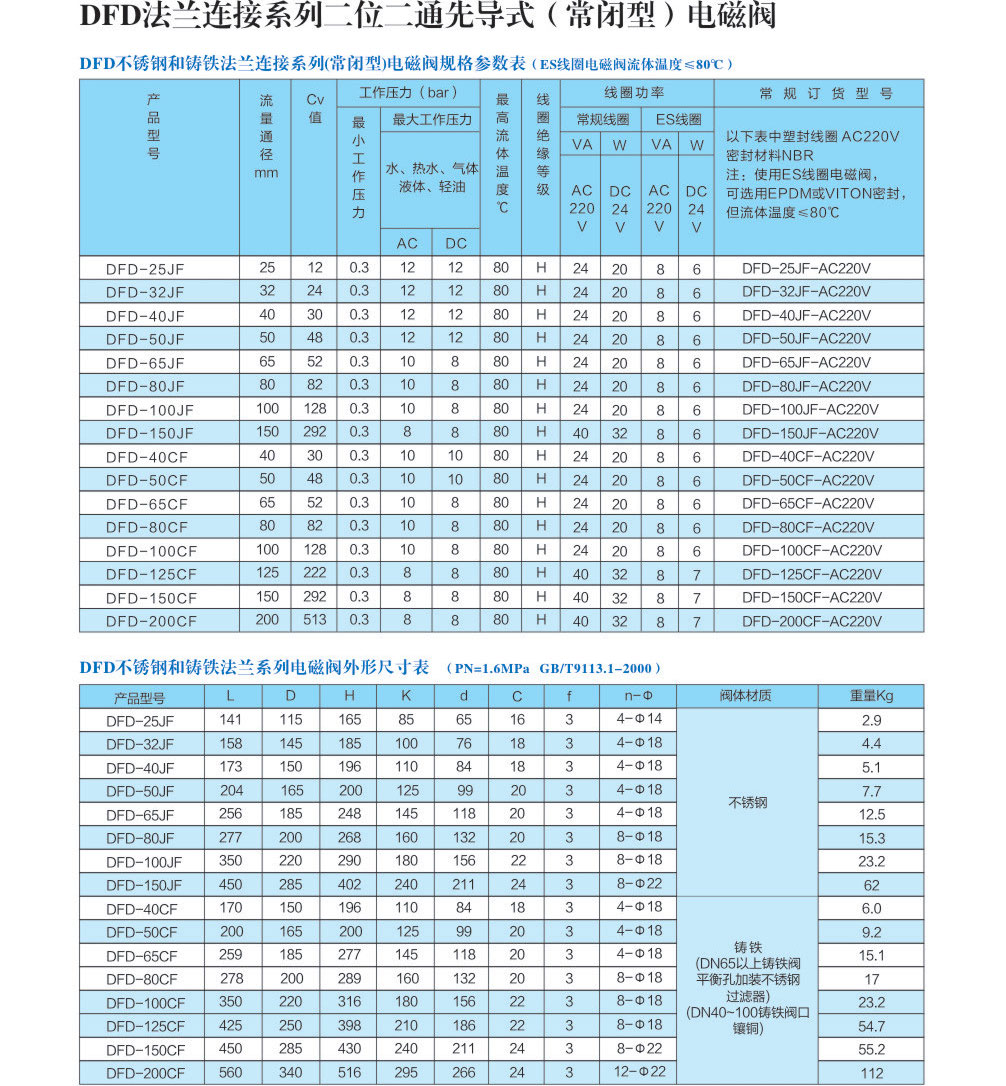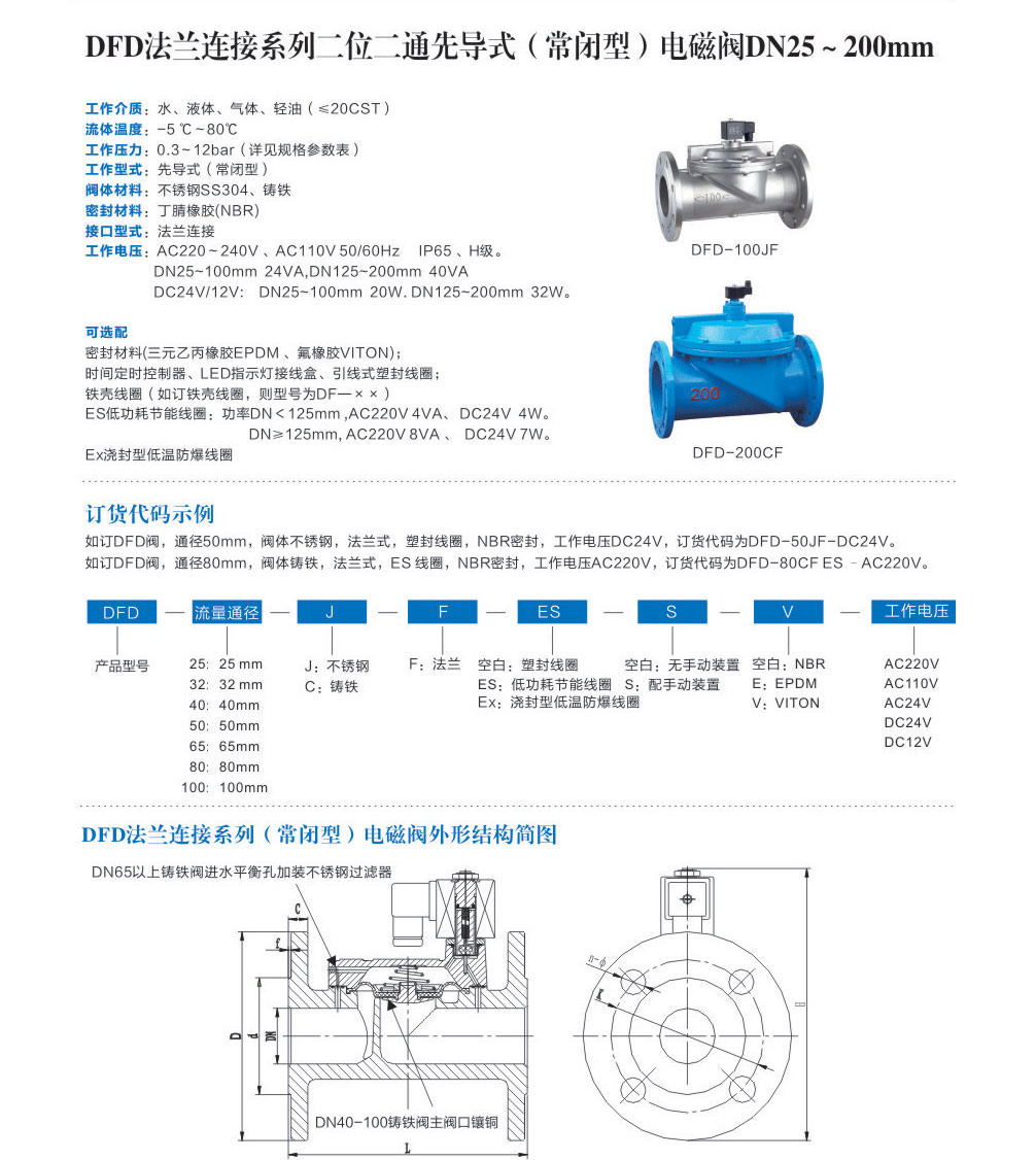 DFD 先导式电磁阀法兰接口(常闭常开)
